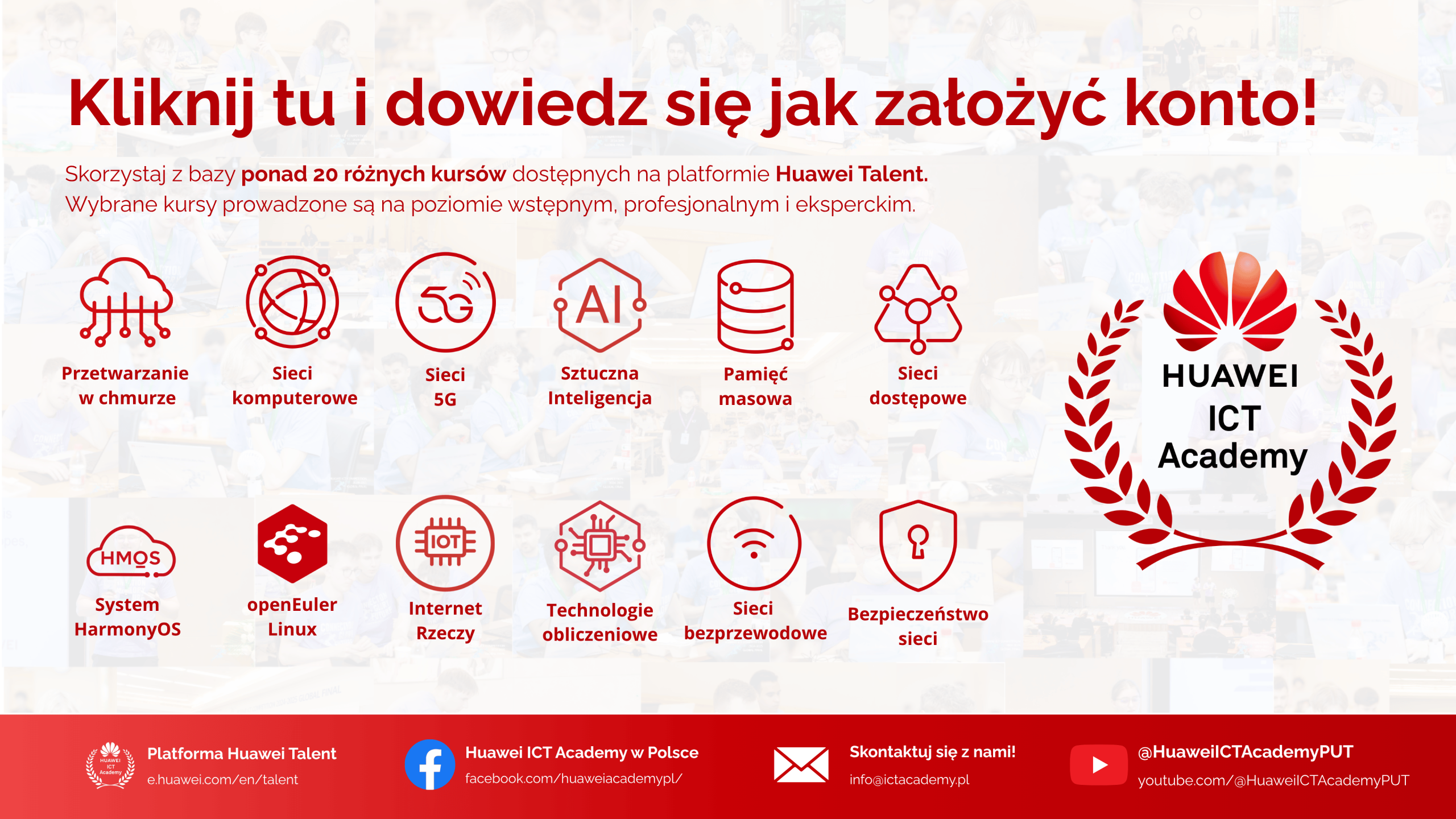 Jako największa Huawei ICT Academy w Polsce, wspieramy rozwój talentów technologicznych łącząc edukację z innowacją.