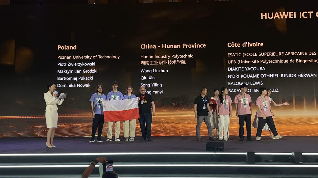 23 maja 2024 w Shenzhen po 8 godzinnych zmaganiach zespół z Politechniki Poznańskiej zdobyła główną nagrodę na ścieżce sieciowej w konkursie Huawei ICT Competition 2023-2024.