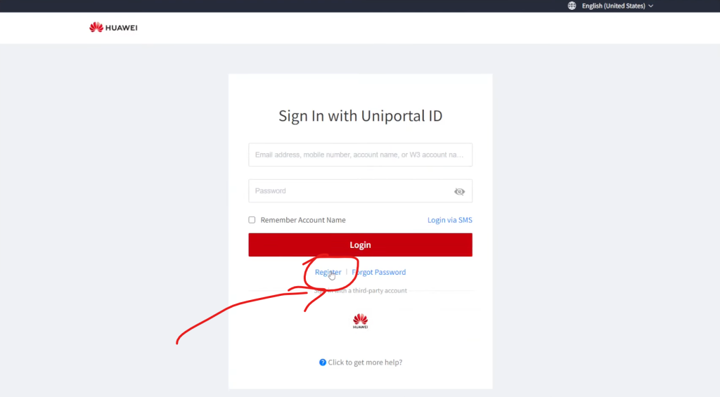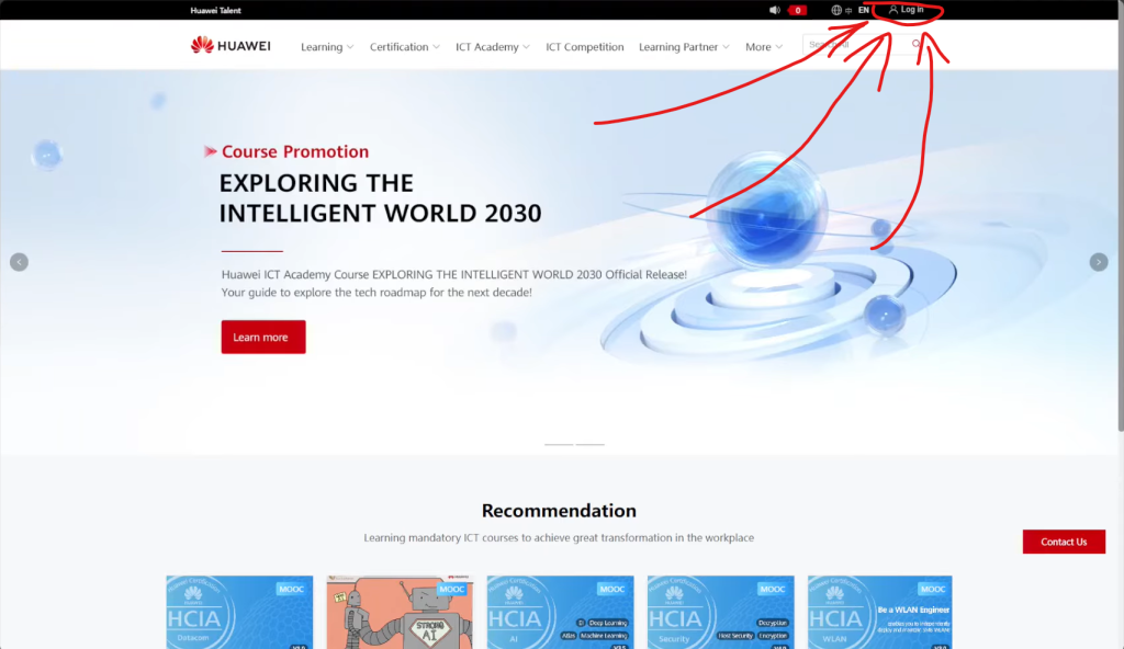 1. Przechodzimy na stronę Huawei Talent (https://e.huawei.com/en/talent/portal/#/) i przechodzimy do strony logowania.